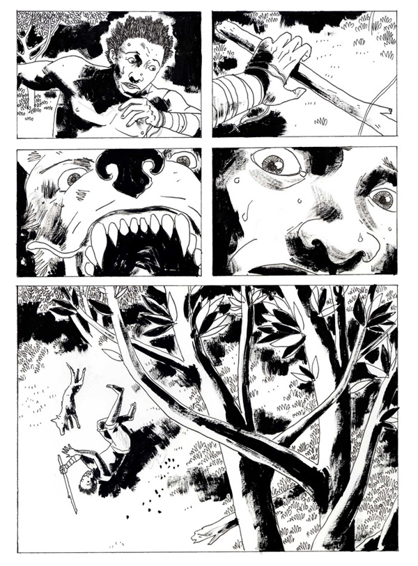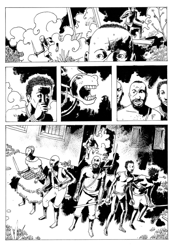 They begin by visually introducing the reader to the harsh realities of slave life in those days. As the tales unfold, nothing supernatural happens, but the reader gets to see what resistance could mean. The high-contrast black-and-white images flow in a slower rhythm than in most recent comics, and the writer/artist knows how to profit from a number of well-planned and -placed silent pages. Even though they are submitted to slavery, his characters fall in love and achieve a personal life. His concise, precise pen and brush get to depict a number of very poetic moments, in which the struggle for freedom and a decent life is depicted as far more subtle than it may look at first, notwithstanding all the violence.